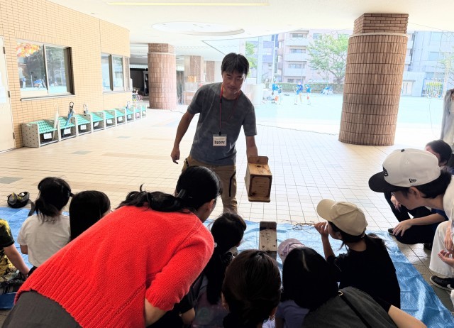 今日は、昨年の11月から実施しているワーク・わく・クラブ「バード企画」の4回目、最終回でした。日本鳥類保護連盟の岡安栄作博士による指導のもと、3月に校庭の樹木にかけた巣箱をいよいよ開いて見る日です。子どもたちも、保護者のみなさんも、固唾を飲んで巣箱を見守りました。