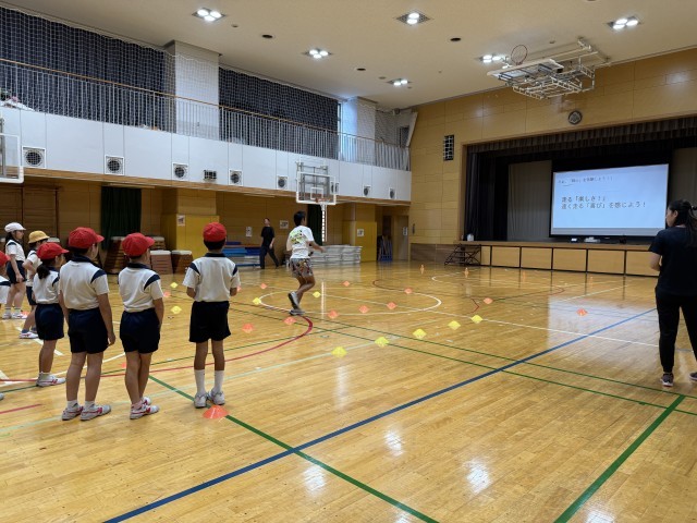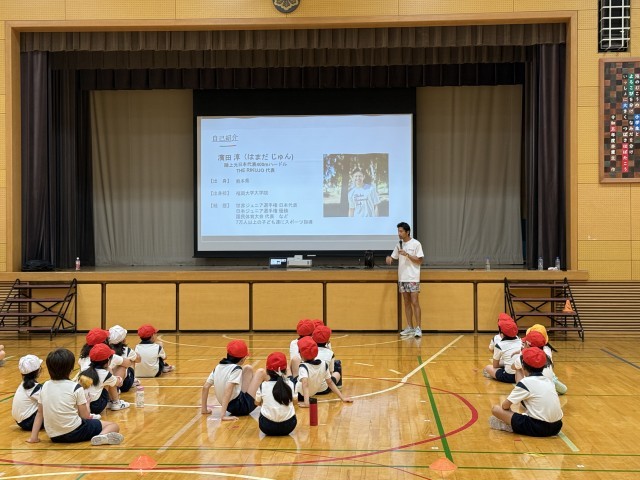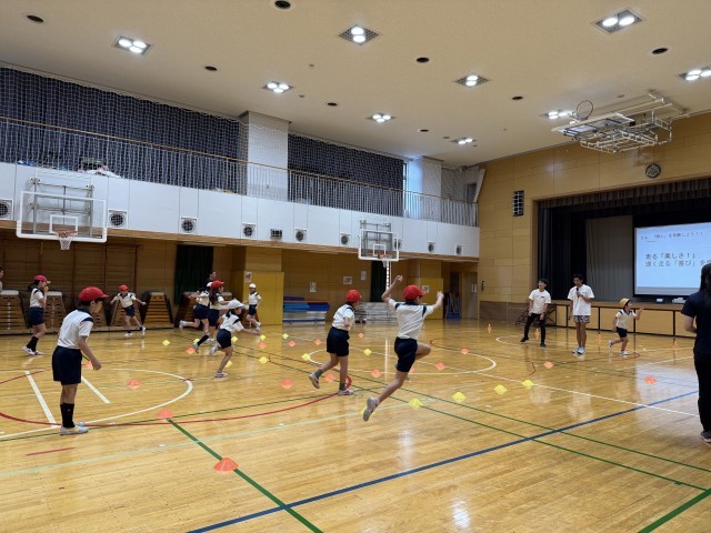 濱田さんの走る姿もびっくりするほど歩幅が広く、さすがにとても軽やかでした。子どもたちも一緒に走って、走り方を学びました。運動会の短距離走でさっそく活かせそうです。