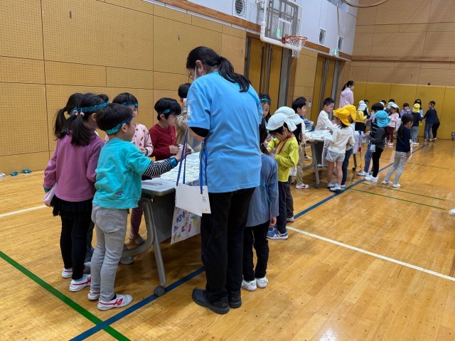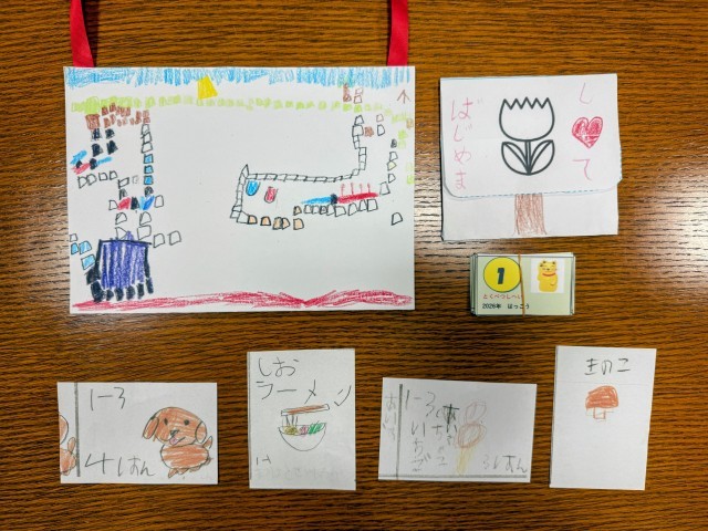 近隣の幼稚園、保育園から園児のみなさんに来ていただき、1年生と交流しました。1年生がお店屋さんになり、手作りの商品で園児のみなさんをおもてなししました。楽しそうに交流しており、私もラーメンやアイスやペットの犬を購入して遊びました。