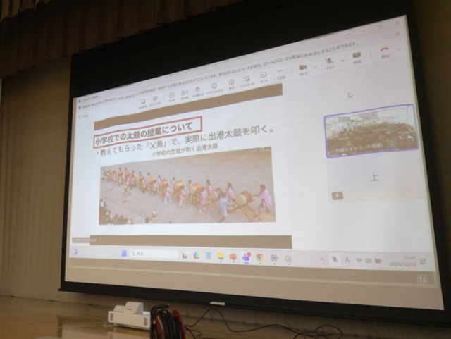 麹町小学校は、「ごみの処理と利用」について発表しました。身近なごみの処理や再利用の仕方を分かりやすく説明することができました。また、小笠原小学校のみなさんからは、「小笠原太鼓」について教えていただきました。迫力ある太鼓の演奏も披露していただき、子どもたちは「感動した」「実際に小笠原に行って聴いてみたい」という感想をもちました。年明けに行う3回目の交流も、子どもたちは楽しみにしています。