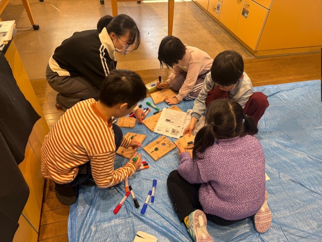 今日は、ワーク・わくクラブのバード企画で、巣箱づくりを行いました。岡安博士のお話を伺いながら、思い思いの絵を描いて3つの巣箱をつくり、校庭の樹にかけました。校庭では、みんな背中に羽を付けて鳥になった気持ちで、どこなら自分の巣にしやすいかと考えました。