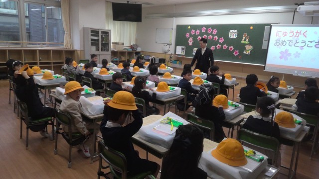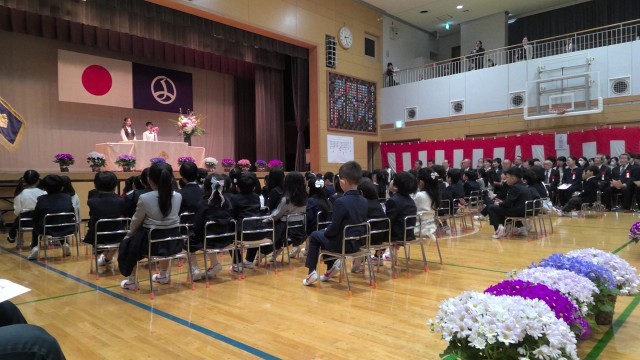 やや雨模様だったので集合写真は体育館で撮りましたが、帰るころには雨も止み、校庭で写真を撮る親子の姿が見られました。正門脇の桜も、1年生の入学を待っていたかのようにまだ花びらを残しており、素敵な入学式になりました。