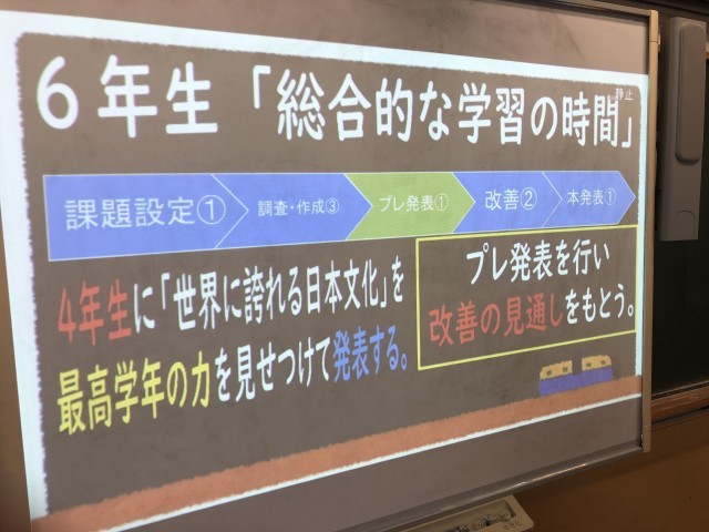 本校は国際教育を推進しています。今日は6年生が伝統文化への理解促進をテーマに教科横断的学習に取り組みました。国語では古典芸能の世界で昔の人のものの見方や感じ方を、社会科では貴族のくらし、武士の世の中、室町文化を学びました。日光では外国の方へインタビューを体験した6年生は、11月の鎌倉の校外学習で、今回の教科横断的学習で学んだことを生かして、外国の方に日本文化のよさを英語で発信します。世界にはばたく九段の子を目指しています。頼もしい6年生です。