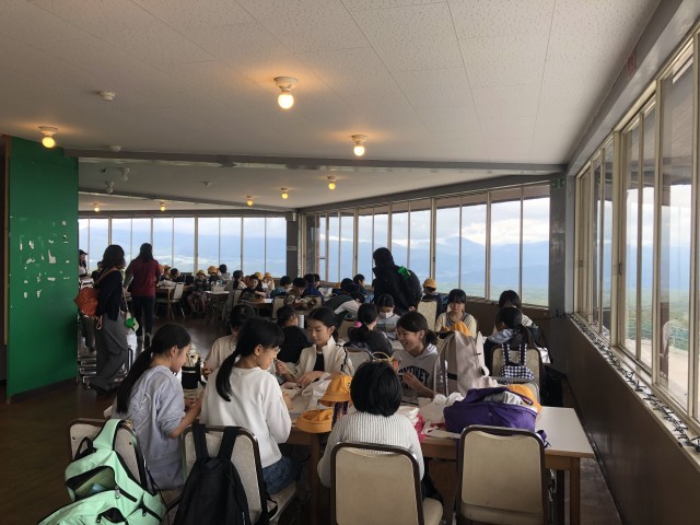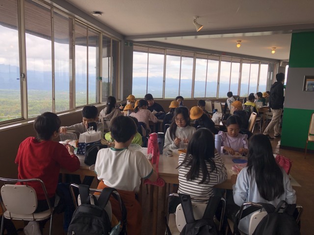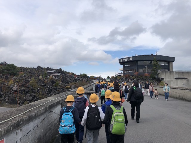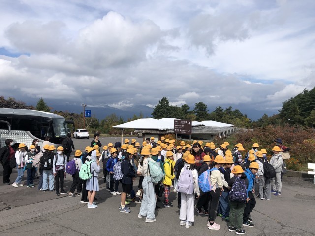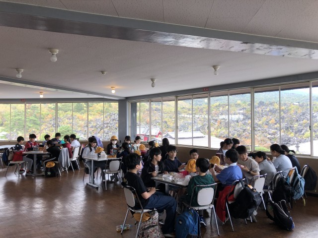 5年生は予定より早く鬼押出しに着きました。バスの中では歌あり、クイズあり、みんなでバスレクを楽しみ、バス酔いする子はいませんでした。昼食後は、班行動で鬼押出しを散策します。時々、薄陽がさして、気持ちのよい天候です。