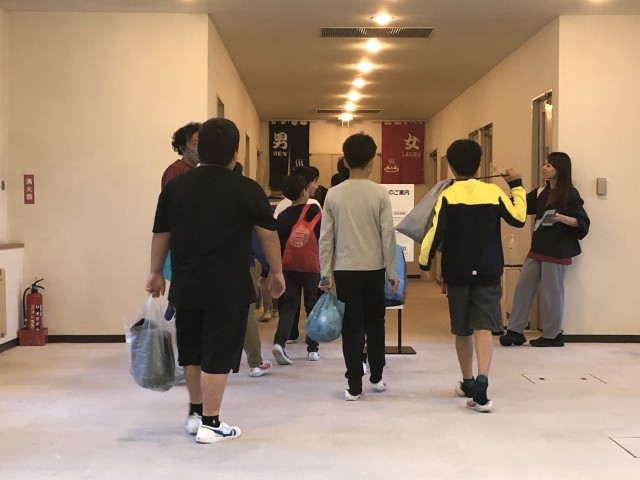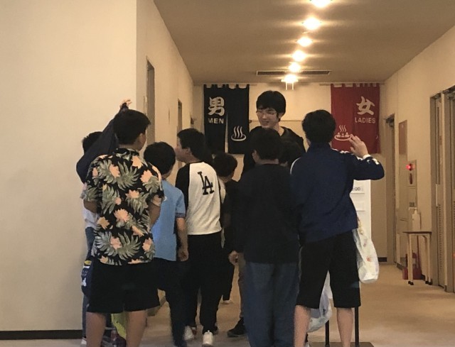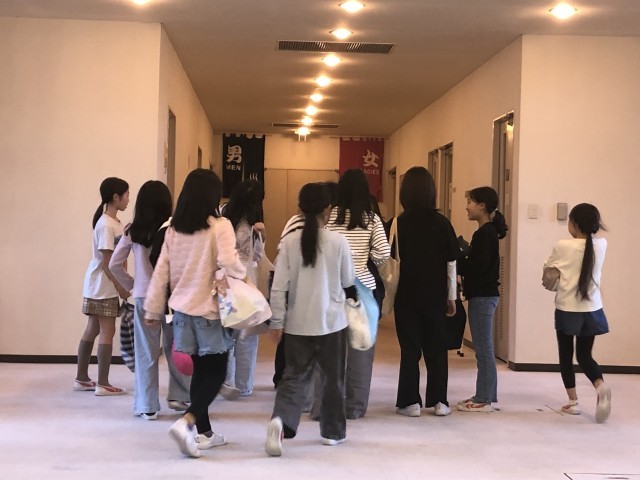 入浴タイムです。宿舎の風呂は温泉です。5年生は出てきては「気持ちがよかった」と言っています。温泉で一日の疲れをとり、お腹をすかせて夕飯となります。みんな元気な5年生です。安心してください。