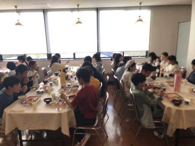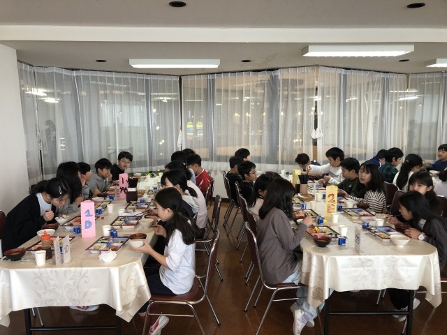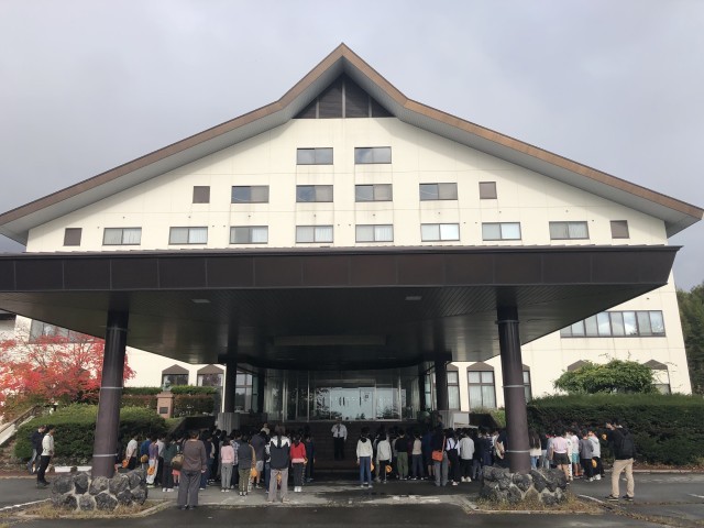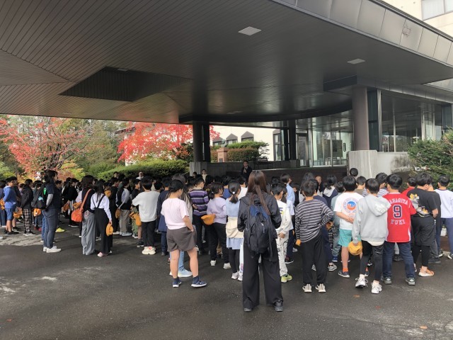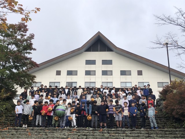 朝食後は部屋をきれいにし、お茶の水小学校と閉校式を行いました。あいさつ、安全、協力に感謝が加わった宿舎での3日間でした。最後に5年生89名全員で宿舎をバックに学年集合写真を撮りました。よい記念になりました。5年生は宿舎を出て、群馬県立自然史博物館へ向かいます。