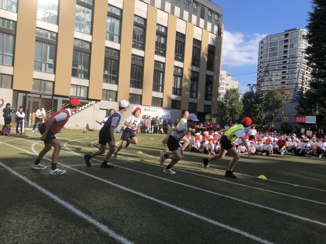 4.2.6年生の演技とリレーの様子です。今年は白組が優勝しました。練習の成果を十分に発揮したさすがは、九段の子どもです。たくさんの拍手と声援をありがとうございました。