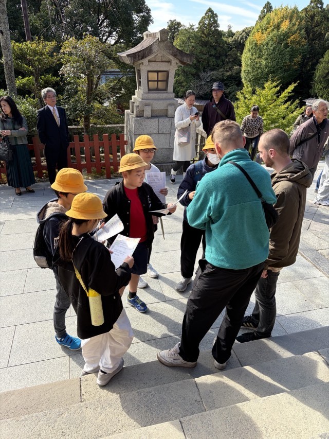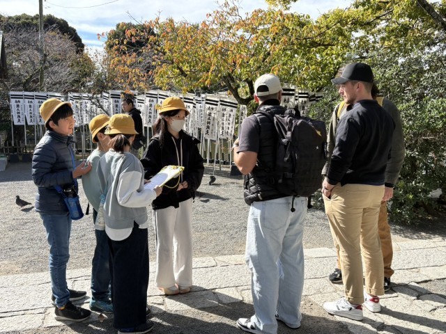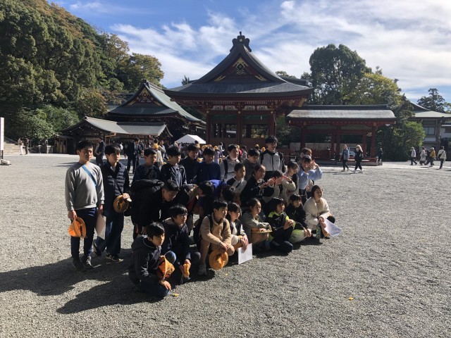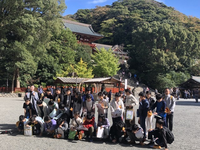 6年生が社会科見学に来ています。歴史で学んだ武士の世の中で、鎌倉に幕府を開いたこと、源氏のすごさを自分で確認しています。英語での外国の方へのインタビューは日光の時より、積極的に話しかけています。英語によるコミュニケーションに6年生は自信をつけていることがよくわかります。