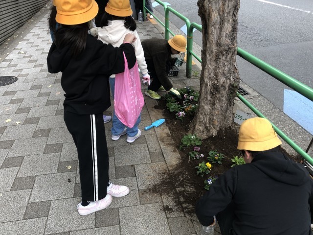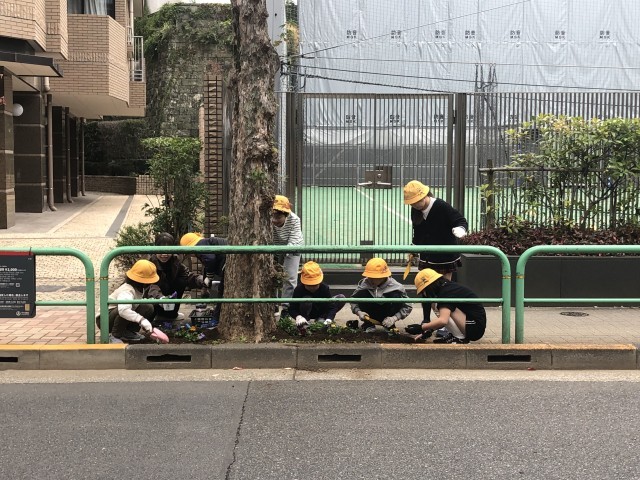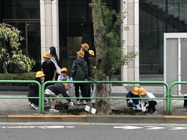 今日は年に2回ある千代田区一斉清掃日です。九段は町会、地元企業、大妻女子大学、社会福祉協議会の方と連携し、花を植えて環境美化を中心に取り組んでいます。植えた場所は子どもの通学路でもあり、子どもの街づくりの意識も高まる素敵な活動です。