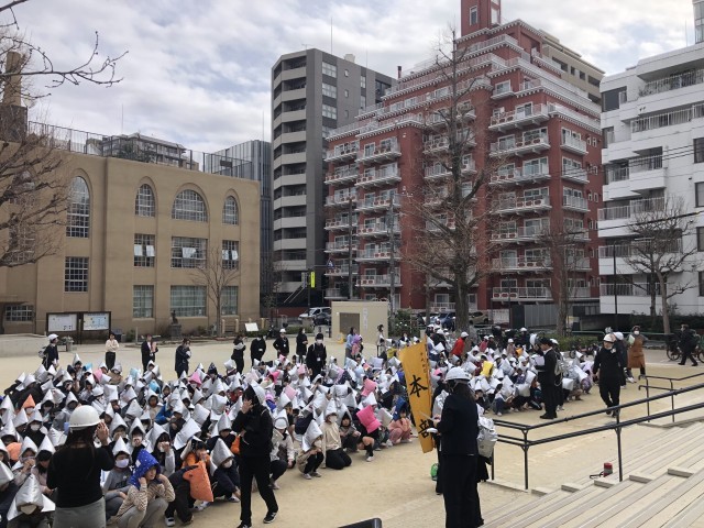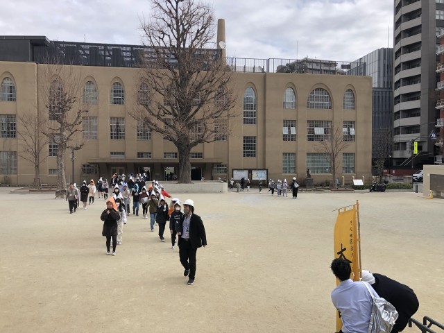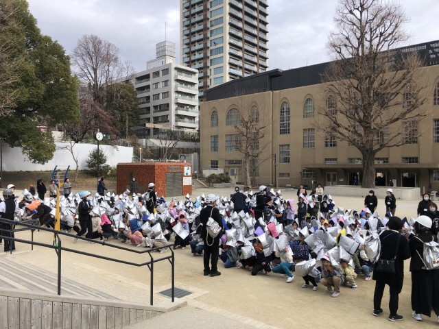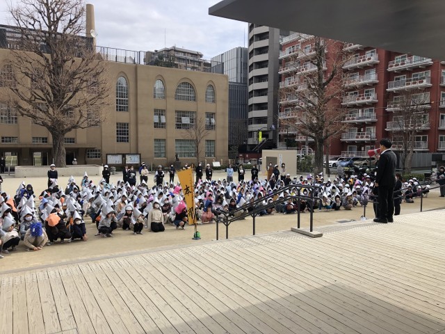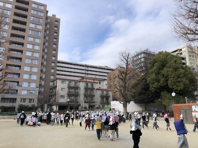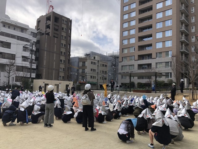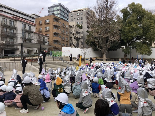 今日は、毎月実施している避難訓練がありました。地震発生後に給食室から出火し、東郷公園へ避難する想定でした。普段は楽しく遊ぶ場所が、この時だけは命と安全を守る場所となる学習をしました。最後は、31年前の阪神淡路大震災に遭った先生から体験談に基づいた話を真剣に聞いている子どもたちでした。いざという時の備えは大事です。