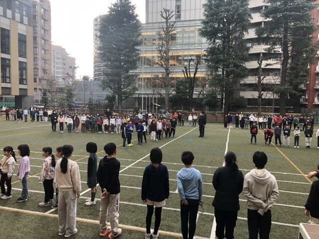 運動委員会が中心となって、3分間の八の字跳びに挑みました。今日は1〜3年生の日。寒い日に体をあたたかくするよい運動です。この時期は体育の授業でも取り組んでいます。各学級が何回跳べたかは、給食時の昼の放送で発表されました。みんな楽しく活動できました。