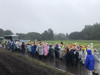 早雲山からロープウェイで大涌谷へ来ました。大涌谷では火山の歴史や温泉との関係などについて学びました。湧き出る噴煙と硫黄の匂いに驚きの声が上がりました。