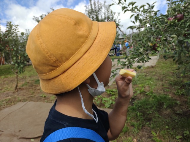 5年生嬬恋村自然体験交流教室の次の行程は、松井農園にてリンゴ狩り体験です。紅玉、トキ、秋映、そしてシナノスイートといった種類豊かなリンゴを収穫するとともに、一つ一つ味わうことで、それぞれ異なる味わい、食感、香りを楽しみました。「リンゴ」という一つの果物から広がる豊かな世界に触れた子供たちの笑顔は、とても生き生きとしており、その学びは心に焼き付いたことでしょう。引き続き宿泊学習の様子を随時更新してまいりますので、楽しみにしていただければ幸いです。