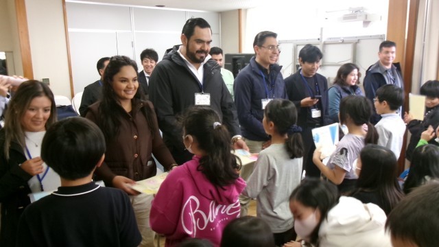 本日、番町小学校に国際的な交流の機会が訪れました。遠くメキシコより、小学校の校長先生及び理事長の皆様が来校され、本校の教育活動を視察されました。各学級の授業の様子を御覧いただき、各学級の児童がスペイン語で「¡Buenos días!(ブエノス・ディアス)」と元気に挨拶を交わし、温かな雰囲気の中で交流が行われました。子供たちは、異なる文化や言語に触れることで、世界の広がりを肌で感じる貴重な体験となりました。また、子供たちが日々取り組んでいる給食や清掃活動を学ぶことが目的の視察のため、子供たちが自らの手で教室や廊下を丁寧に掃除する姿には、深い感銘を受けられた様子で、「子供たちの責任感と協力の精神に学ぶことが多い」とのお言葉をいただきました。さらに、4年生には、メキシコについての特別授業を実施していただきました。来校された先生方からは、メキシコの国の様子や文化について、写真や地図を交えてわかりやすくお話しいただきました。子供たちからは、「国旗の鷲と蛇のイラストにはどんな意味があるのですか?」「メキシコの人口は何人くらいですか?」「有名な食べ物や魚は何ですか?」といった質問が次々と出され、先生方は一つ一つに丁寧に答えてくださいました。このような海外からの視察は、私たちの教育実践を見つめ直す機会であると同時に、子供たちにとっても国際理解を深める大切な学びの場となります。今後も、世界とつながる教育の意義を大切にしながら、子供たちの豊かな心と視野を育んでまいります。