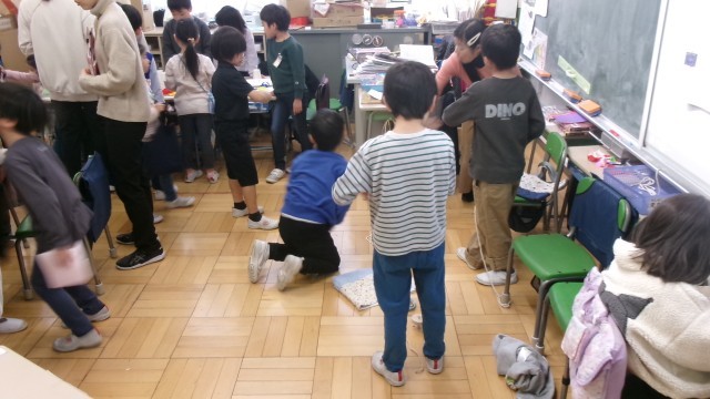 本日、1年生は番町幼稚園5歳児うめ組の皆さんをお迎えし、楽しい交流のひとときを過ごしました。1年生が心を込めて準備した遊びのお店には、こま、くじ、けん玉、かみコップゲーム、かみひこうきと、工夫を凝らした遊びが並びました。園児の皆さんは目を輝かせながら、それぞれのお店を巡り、笑顔いっぱいに楽しんでいました。その中で、特に印象的だったのは、気持ちがのらず戸惑っている園児に対して、1年生がそっと隣に寄り添い、遊び方を優しく教えたり、励ましの言葉をかけたりする姿です。小さな背中に宿る思いやりと責任感は、まさにこの一年間の成長の証であり、見守る私たちの心を深く打ちました。こうした交流は、年齢の異なる子供たちが互いに学び合い、思いやりや協力の心を育む貴重な機会です。1年生にとっては、幼い友達に寄り添うことで自分の成長を実感し、園児にとっては、憧れの小学生との触れ合いを通して新しい世界への期待を膨らませる時間となりました。これからも、本校は番町幼稚園や地域などとともに、子供たちの心を育む温かな交流を大切にしてまいります。