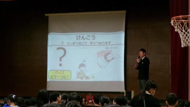 本日、全校朝会において、「健康」について話をしました。健康を維持し、心身ともに健やかに成長するためには、「運動」「食事」「休養・睡眠」の三つの柱が大切であることを改めて伝えました。これら三原則を日々意識し、十分に取り入れることが、子供たちの健やかな成長の礎となります。冬の季節は寒さが厳しく、外での運動が難しくなることもあります。しかしながら、体を動かすことは、心身の健康を保つ上で欠かせません。そこで本校では、持久走旬間として、本日より2月6日(金)までの期間、中休みの時間を活用し、全校児童が持久走に取り組むこととしました。子供たちには、自分のペースを大切にし、無理のない範囲で走り続けることを伝えております。持久走を通じて、体力の向上はもとより、粘り強く取り組む姿勢や達成感も味わってほしいと願っております。健康について取り上げたのは、子供たちが自らの生活を見つめ直し、日々の習慣をよりよいものへと高めていくきっかけとしてほしいとの意図があります。全校児童が一堂に会し、健康の大切さを共有することで、学校全体に健やかな空気が広がることを期待しております。
