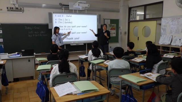 本日、5年生の外国語の授業では、「名前のつづりをたずね合おう」を学習のめあてとし、英語でのやり取りを通して互いを理解し合う活動に取り組みました。授業では、ALTと英語の講師の先生との自然な対話を手本にしながら、相手の名前のつづりを丁寧にたずねるために、自分の名前のつづりを相手に分かりやすく伝える準備を行いました。子供たちは、「How do you spell your name?」といった表現を繰り返し使いながら、声を掛け合い、英語で伝えることの楽しさや大切さを実感している様子でした。多少の間違いを恐れることなく、思い切って表現しようとする姿からは、これまで積み重ねてきた学びの確かな広がりが感じられました。本年度より、千代田区の御配慮により、ALTを学校に派遣していただく回数が「毎日」となり、第1学年から第6学年まで、全ての学年でALTが関わる外国語・外国語活動の授業を実施できる環境が整いました。さらに本校では、英語講師の先生も新たに配置し、ALTと連携しながら、子供たち一人一人に寄り添った授業づくりを進めております。ALTは、子供たちにとって「生きた英語」に触れる存在であり、教科書の中の表現が実際のコミュニケーションとしてどのように使われるのかを、身ぶりや表情、語り掛けを通して分かりやすく示してくれています。その関わりは、子供たちの「伝えたい」「分かり合いたい」という気持ちを自然と引き出し、外国語を学ぶ意欲を大きく高めています。外国語・外国語活動の授業は、単に言葉を覚える学習にとどまらず、相手を大切に思い、自分の考えや思いを伝えようとする力を育む大切な時間です。授業の中で子供たちは、先生や友達と積極的に関わり合いながら、英語を「使う」ことで、できることを着実に増やしています。これからも本校では、こうした学びを大切にしながら、子供たちが世界に目を向け、多様な人々と豊かにつながっていく力を育んでまいります。