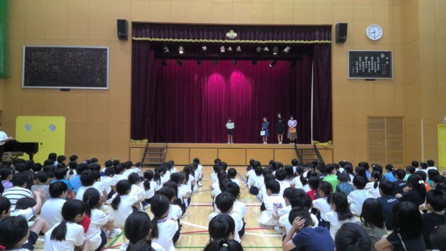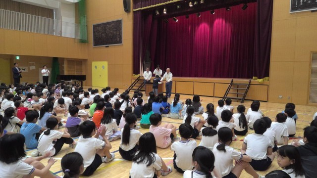今日の1時間目は前期終業式でした。体育館に全校児童が静かに整列し、校長先生の話をしっかり聞いていました。また、1年生・3年生・5年生・なかよし学級から1名ずつ、【前期に頑張ったこと・後期に向けての思い】を代表児童の言葉として作文を読みました。