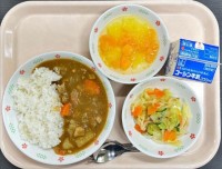 ・米粉のチキンカレーライス・キャロットドレッシングサラダ・サイダーポンチ ・牛乳...