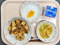 ・麻婆豆腐丼・春雨サラダ・柿・牛乳【ランチニュース】柿には、風邪に負けない体を作...