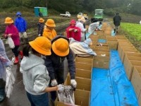 「農作業体験①」霧雨の中、嬬恋村立東部小学校の友達と一緒に農作業をしました。