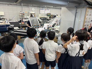 3年生は、社会科見学で『帆風(千代田区一ツ橋)』の印刷工場へ行きました。紙や印刷物がどうやってできるのか学んだ後、様々なものが印刷されている様子を見学しました。お客様のことを考えてお仕事をしていることなど、たくさんのことを学びました。