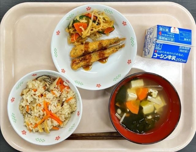 【ランチニュース】にぎすは、日本海などにいる小さな魚です。見た目は細長くて、体がつるっと光っています。たんぱく質やカルシウムがたっぷりで、骨を丈夫にする働きがあります。今日は「にぎすフライ」です。よくかんで、おいしく食べましょう。