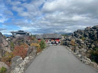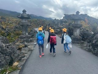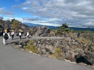 「鬼押出し園」お弁当を食べ、グループごとに園内を散策しました。浅間山の噴火によって作り出された溶岩の中を歩きました。