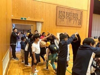 【東部小学校との交流④】東部小の皆さんがお見送りのアーチをつくってくれました。すてきな交流、ありがとうございました!