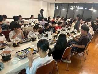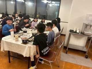 【2日目夕食】生活班ごとに集まり、おいしいご飯を食べました。