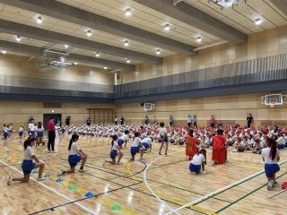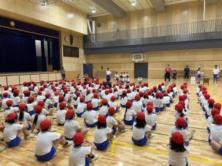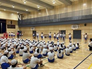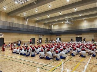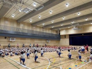 雨天のため、体育館で応援合戦と閉会式を中心に全体練習をしました。応援団の元気で大きな声や太鼓の音に合わせ応援しました。明るく元気に歌うゴーゴーゴー(運動会の歌)もお楽しみに。