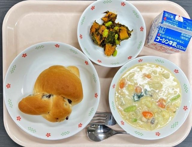 【ランチニュース】レーズンはある果物を乾燥させた食べ物ですが、何の果物かわかりますか?正解は、みんなが大好きなぶどうです。レーズンは、ぶどうを乾燥させた干しぶどうのことです。ぶどうを乾燥させることで、栄養もぎゅっとつまって、栄養たっぷりなレーズンに変身します。苦手な人もいるかもしれませんが、あと一口、がんばって食べてみましょう。