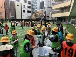 区の「一斉清掃の日」に合わせ、ファミリー班で協力しながら小学校周辺の歩道や公園の清掃をしました。