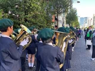 11月10日(月)千代田区「社会を明るくする運動」に5・6年生のマーチングバンドが参加しました。校庭で全校児童に演奏を披露したあと、靖国通りなどでパレードをしました。堂々と演奏し、街中に元気ですてきな音色を響かせました♪
