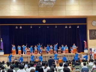 3年生の和太鼓演奏は、お茶の水小の伝統です。一人一人が奏でる音、一人一人が発する声が一つの音に聞こえるように“絆”を紡ぎ、「祭り」を表現します。元気な声や太鼓の音の重なりをどうぞお楽しみください!