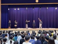 3年生と4年生は、書道家師範から書道を教わりました。手本をよく見て、はね・とめ・はらいなどを意識しながら「お正月(3年)」「元気な子(4年)」を書きました。