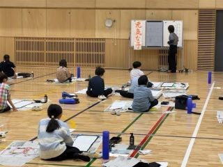 3年生と4年生は、書道家師範から書道を教わりました。手本をよく見て、はね・とめ・はらいなどを意識しながら「お正月(3年)」「元気な子(4年)」を書きました。
