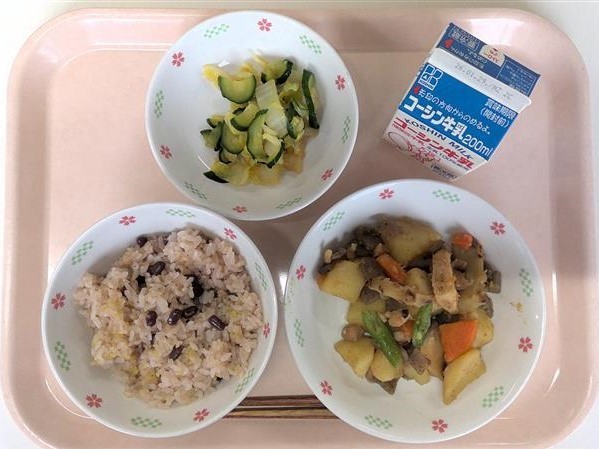 【ランチニュース】五穀ごはんは、白米に「あわ」「きび」「ひえ」「大麦」などの穀物を混ぜてたき上げたごはんです。食物繊維やビタミン、ミネラルが豊富で、体の調子を整えてくれる栄養満点のごはんです。おかずの土佐煮とは、鰹節をたっぷり使った煮物のことです。鰹節の産地として有名な土佐、今の高知県が名前の由来です。今日もよくかんで食べましょう。