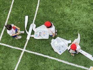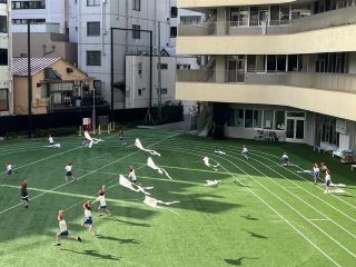 1年生は生活科「かぜであそぼう」で凧あげをしました。自分の好きな絵や文字をかいた世界に一つの凧。糸を通して伝わる風の鼓動や凧があがった喜びを感じました。