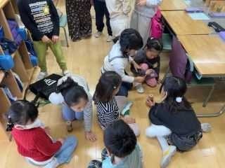 2年生は、幼稚園児を招待して「なかよし会」をしました。コマやけん玉、お手玉などの昔遊びをとおして交流をしました。優しく声をかけたりやり方を教えたり、年長者としての立ち振る舞いが見事でした。