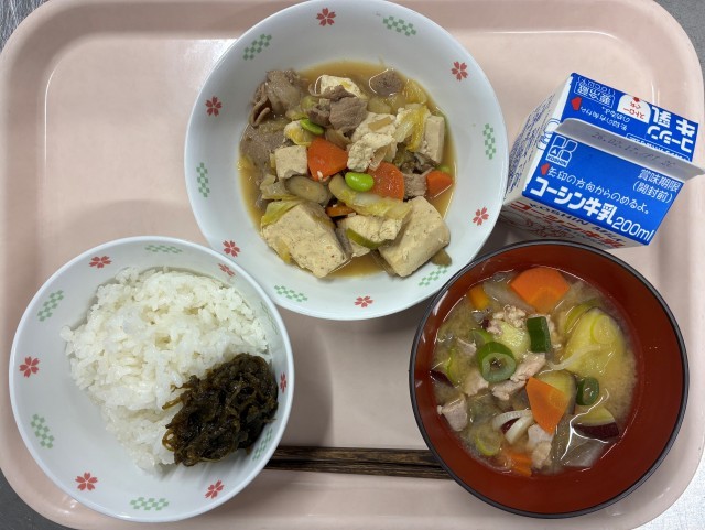 【ランチニュース】今日は2月6日の「のりの日」についてお話しします。701年に日本で初めての法律ができたとき、海苔が大切な贈り物として決められたことから、この日がのりの日になりました。今日ののりのつくだには、給食室でのりをふやかして、しょうゆや水あめなどで煮込んで手作りしました。ごはんと一緒に味わって食べましょう。