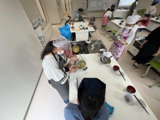 5年生は家庭科の学習で調理実習を行いました。ご飯炊きでは、水の量や火加減に気を配りながら丁寧に炊き上げました。みそ汁づくりでは、煮干しでだしを取り大根や油揚げなどの具材を加え、うま味のあるみそ汁を作りました。どの班も協力しながら役割分担し、真剣に取り組みました。今回学んだことを生かして、ぜひご家庭でも挑戦してくれることと思います。