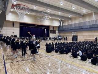 お茶の水マーチングバンドの引継式を行いました。5・6年生による最後の演奏では、これまでの練習の成果があふれる力強い音色が響き、会場から大きな拍手が送られました。演奏後には、6年生から4年生へ楽器や役割が引き継がれ、思いのこもった言葉も添えられました。最後には、これまでバンドを支えてきた6年生を、5年生の演奏と全校児童・保護者の温かい拍手で見送りました。