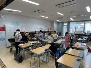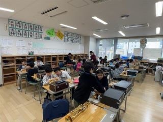 4・5年生の新体制によるマーチングバンドの練習が始まりました。5年生は、姿勢や楽器の持ち方、音の出し方などを4年生に優しく丁寧に教えていました。これから、この新しいメンバーでどんな素敵な音色を響かせてくれるのか、とても楽しみです♪