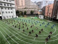 雨天のため、体育館で応援合戦と閉会式を中心に全体練習をしました。応援団の元気で大...