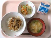 ・豚肉とごぼうの柳川丼・小松菜のおひたし・塩ちゃんこ汁・牛乳【ランチニュース】1...