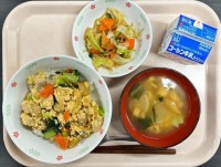 ・じゃこチャーハン・かみかみ和え・鶏肉とえのきのスープ ・牛乳【ランチニュース】...