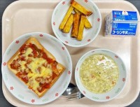 ・森のピザトースト・キャンディポテト ・ふわふわたまごスープ・牛乳【ランチニュー...