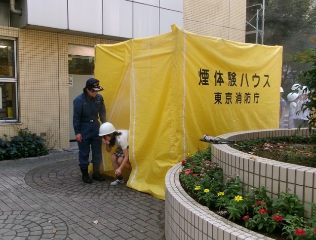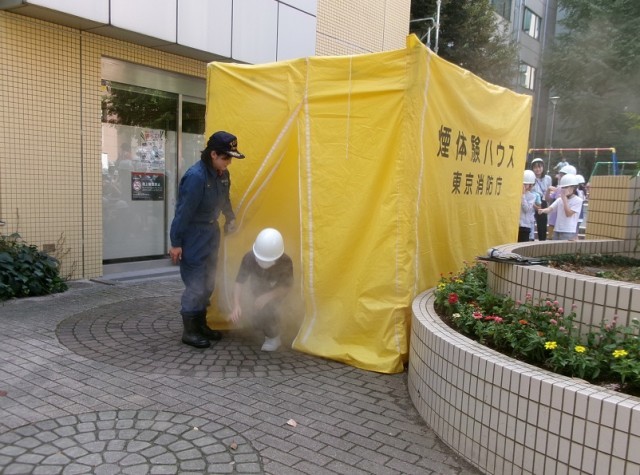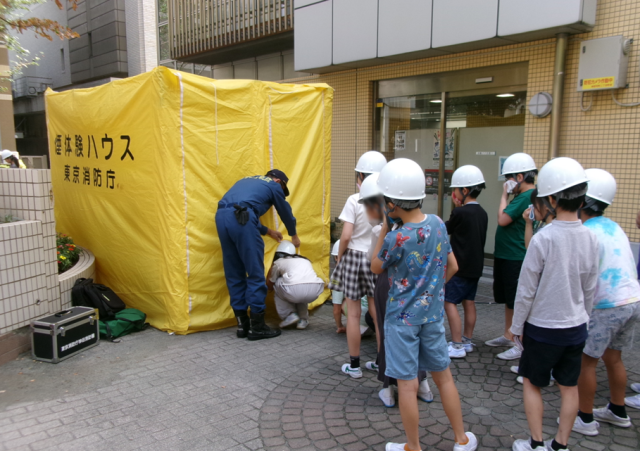 4年生が火災の煙を体験 10/2 東京消防庁の「煙体験ハウス」で