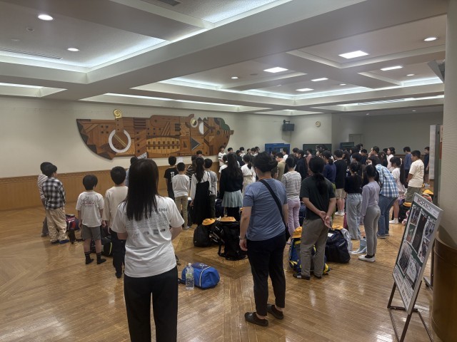 朝7時30分、5年生全員が1階ホールに集合できました。皆わくわくした笑顔です。